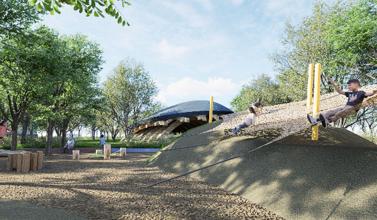 本案基地位於桃園市崙坪文化地景園區,旨在成為桃園的指標型生活藝術公園。重視園區名稱中涵蓋的「文化地景」概念,以及公園作為「供公眾使用的戶外遊憩場所」之公共意義、公眾利益。坐落觀音區的崙坪文化地景園區,與新屋同為臺灣少見的海洋客庄聚落。客庄生活精神與客家文化群體生活空間的形成過程,豐富園區文化地景厚度。園區基地使用脈絡,先於桃園都市發展,在國際電話株式會社撤離,至園區重新開放的閒置期間,時間與自然孕育出一座與環境共生的戶外生態公園。全案目標強化自然長期互動而形成的文化地景,也連結藝術、人文、生活、歷史等不同尺度的意義,延續前沿脈絡。