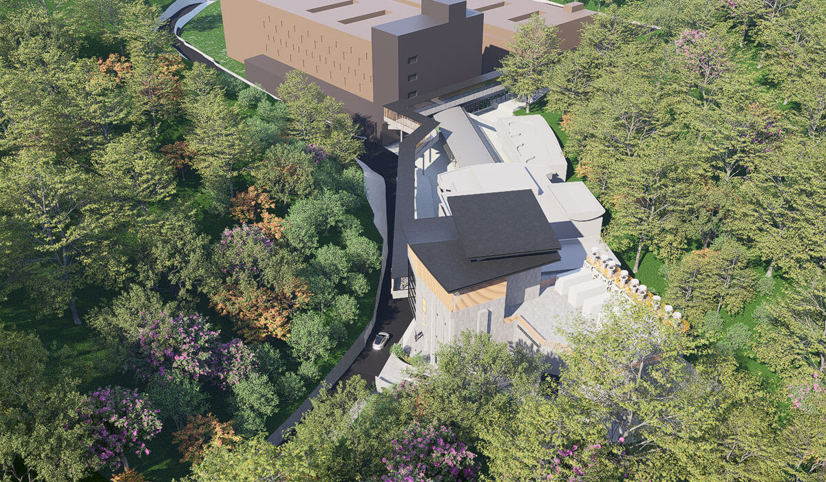 本案基地位於臺北市大安區懷愛館範圍內,屬既有殯葬設施整體開發的一環,周邊包含景仰樓、景行樓及既有火化場等設施。基地空間條件受限,園區內人流、車流與移靈動線交織,需於既有設施持續營運下進行規劃,對動線整合、施工可行性及安全管理提出高度要求。